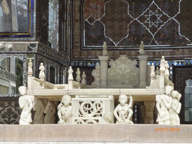 Tronul realizat din faimoasa marmura de Yazd, este realizat din saizeci si cinci de bucati de marmura. Patul tronului este sustinut pe umerii unor ingeri si demoni