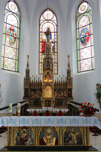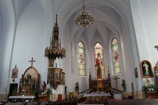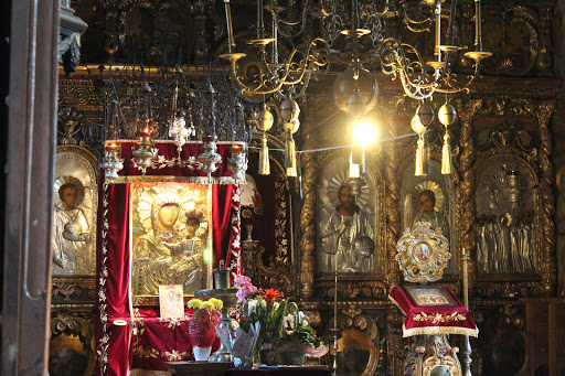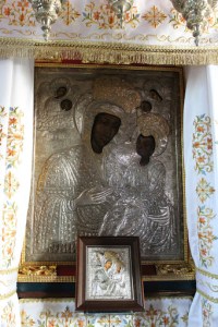 Icoana reprezentand-o pe Sfanta Fecioara Maria cu Pruncul in brate (Madona Neagra) se afla in altarul principal.