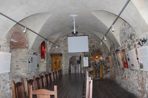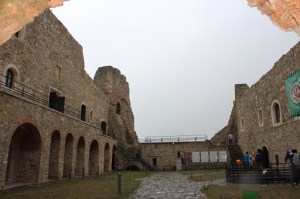 Intrarea in cetate se face pe un podet de lemn aflat la inaltime (ca un viaduct). Daca ai supravietuit urcusului urmatorul test este cel al raului de inaltime. Eu nu l-am trecut prea bine, asa ca interiorul cetatii l-am vazut ca si cand as fi fost pe vapor.