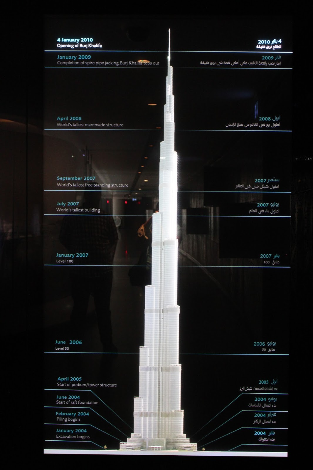 Burj Khalifa – cea mai inalta cladire din lume, 828 de metri inaltime, 163 de etaje, cel mai rapid lift, cea mai lunga distanta care poate fi parcursa cu liftul. A costat aproximativ 1,3 miliarde de dolari.