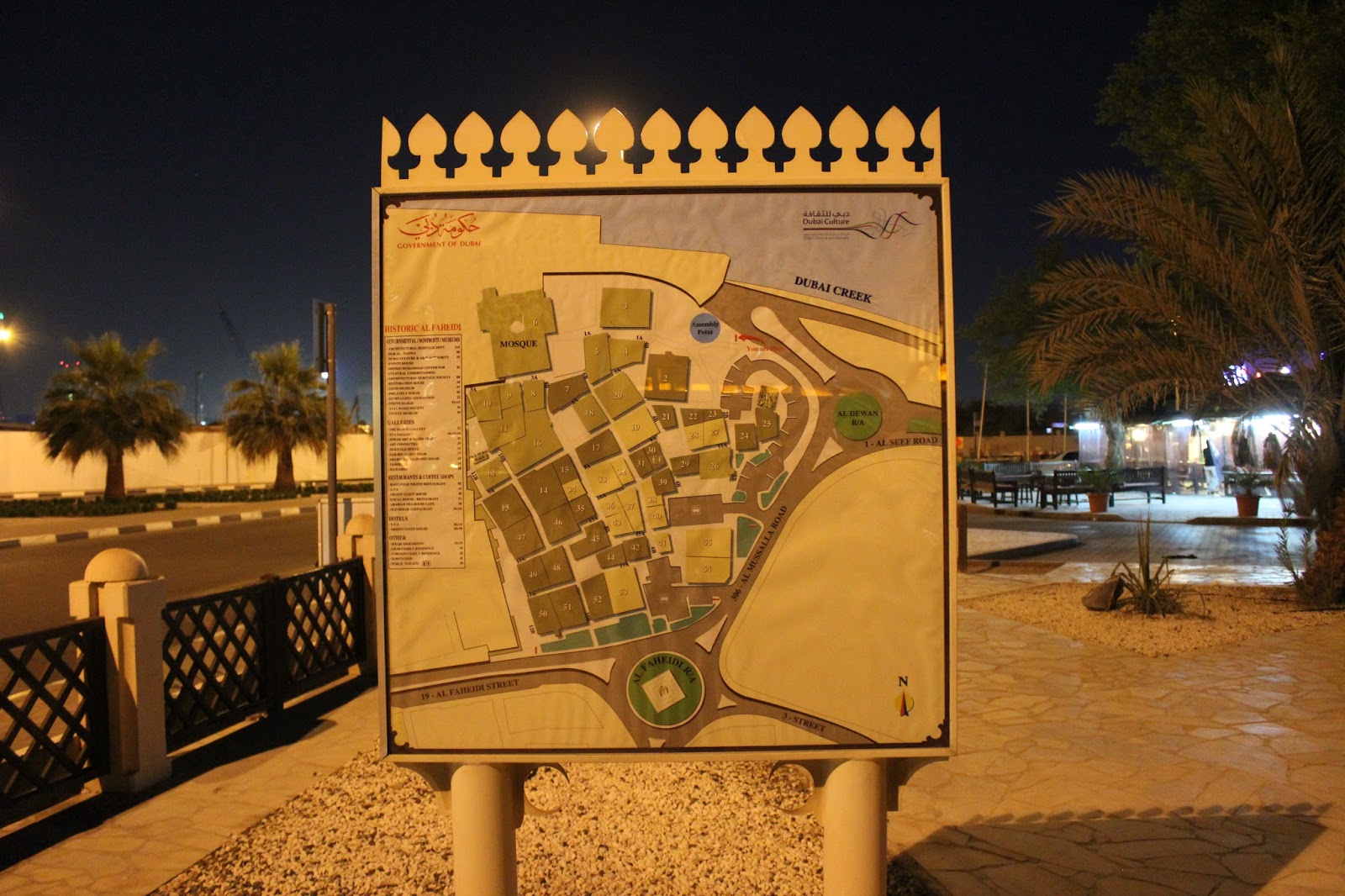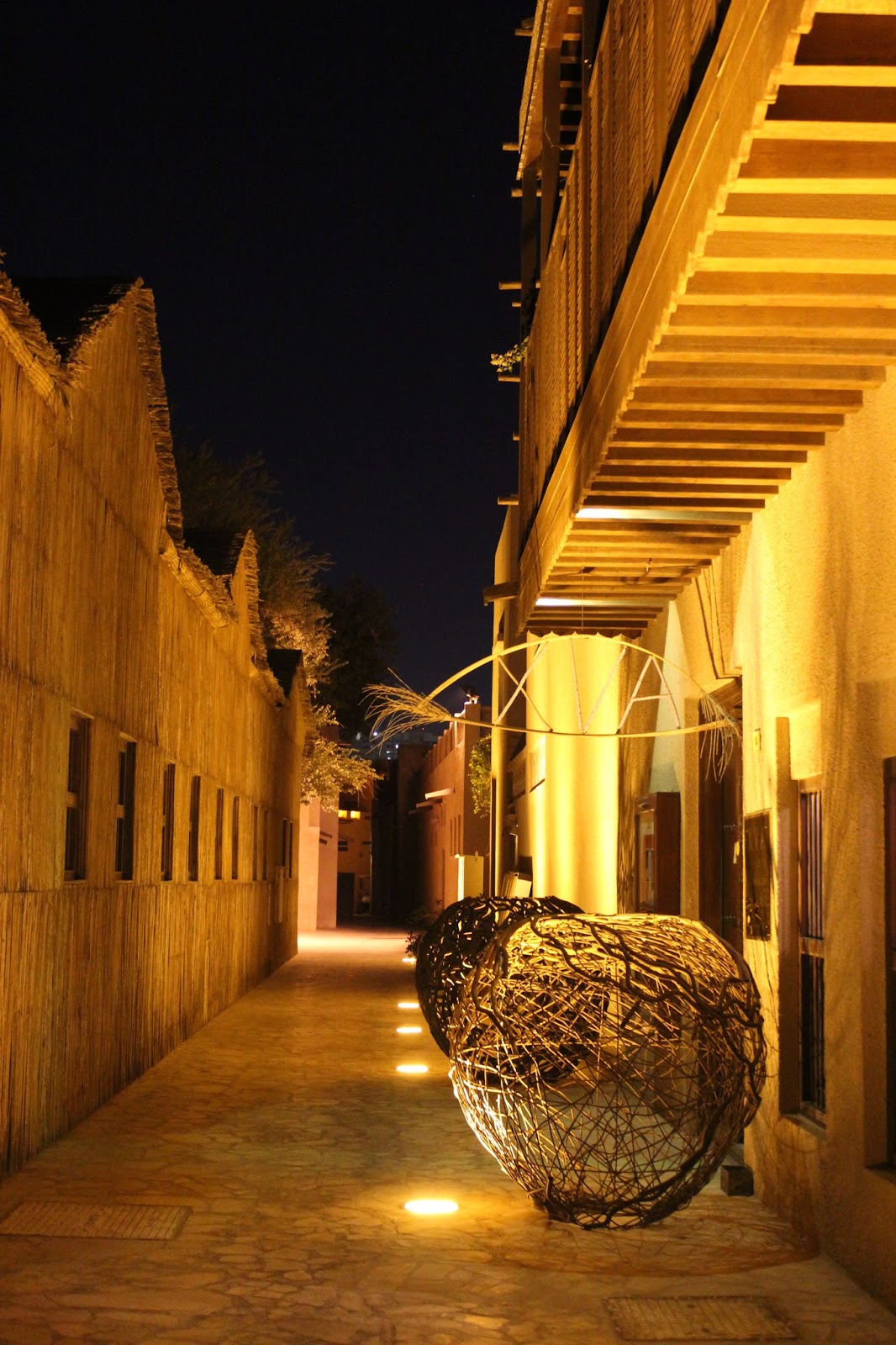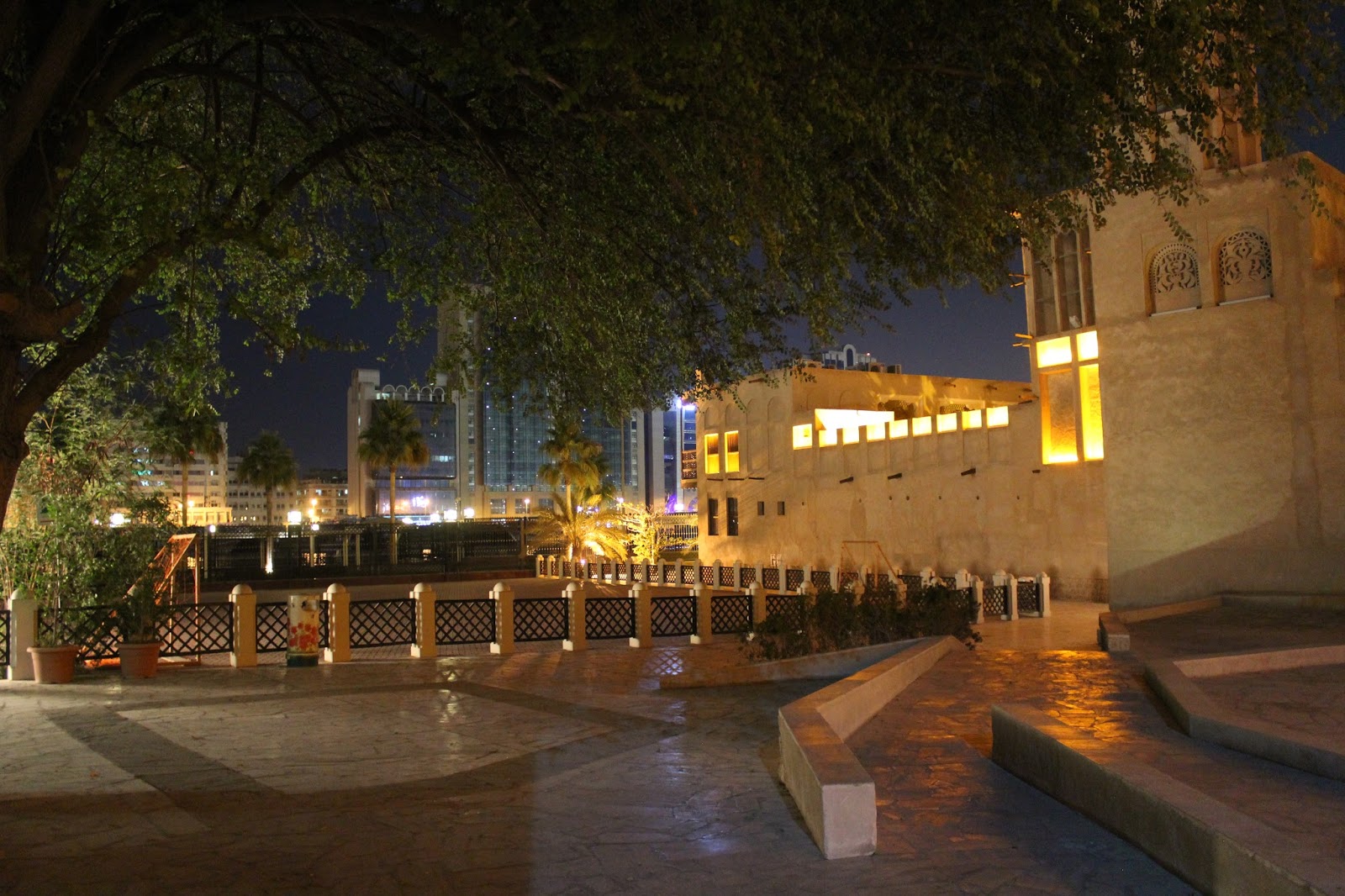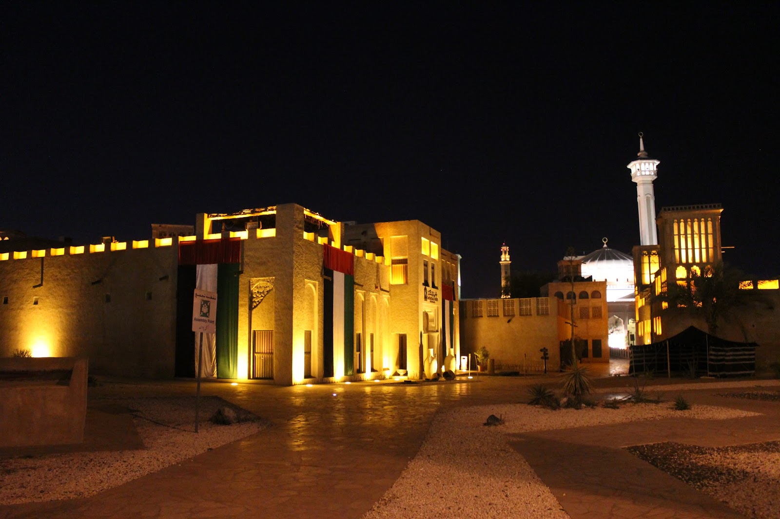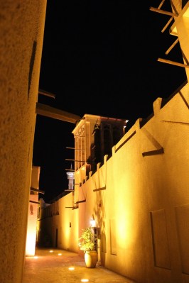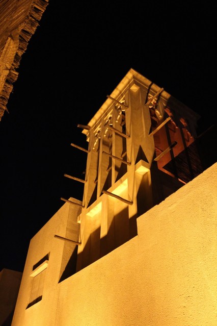 Desi este deja noapte nu putem sa nu mergem sa vedem Bastakiya. Numele zonei vine de la Bastak, un oras in sudul Iranului. Bastakiya a fost infiintata de negustorii persani care s-au stabilit aici in sec. 19. Stradute inguste, case din ipsos si coral tipice arhitecturii traditionale, turnuri de vant, restaurate de municipalitate in ultimii ani. O zona intradevar frumoasa care merita vazuta.