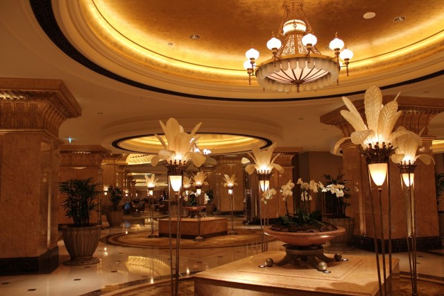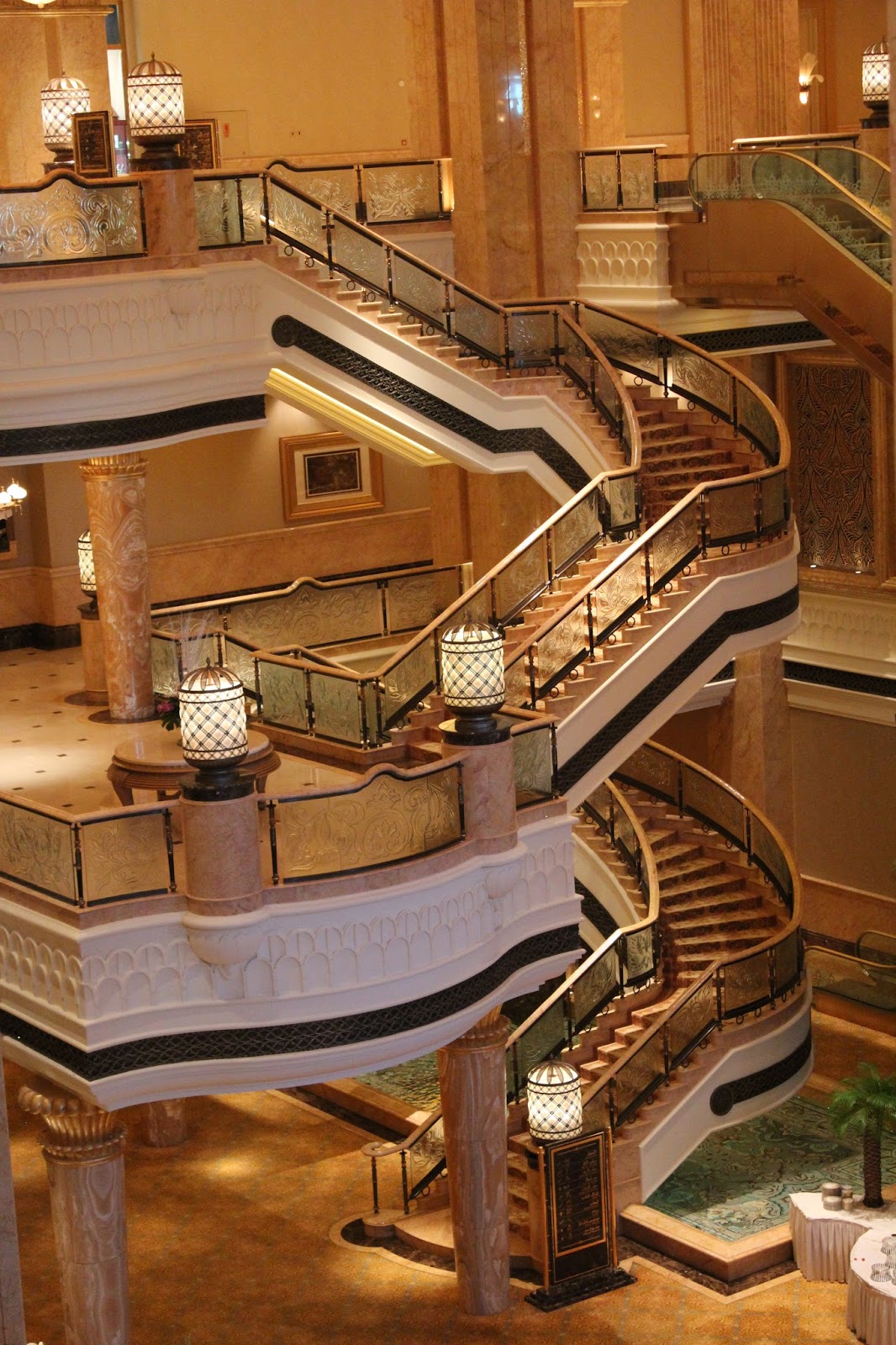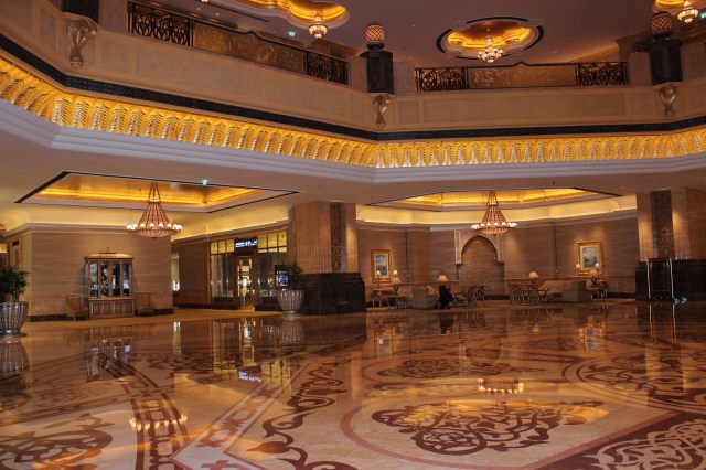 Detinuta de guvernul din Abu Dhabi si administrat de lantul hotelier Kempinski, aceasta cladire, de dimensiuni incredibile are un interior luxos, placat cu aur, impodobit cu o multitudine de candelabre, fiind de o opulenta orbitoare. Decorul este parca desprins din basmele Seherezadei.