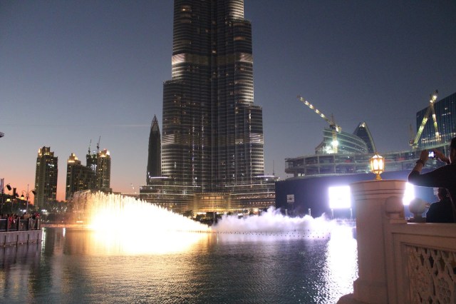 Coboram din turn, de data aceasta liftul nu mai este chiar atat de silentios, aud si ceva despre cat de mandrii sunt ei de ceea ce au realizat. Si nu poti sa nu le dai dreptate. Mancam ceva pe fuga si plecam sa vedem spectacolul fantanilor arteziene. Si este intradevar un spectacol. De fapt, mai multe. Noi stam sa asistam la doua dintre ele.