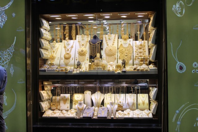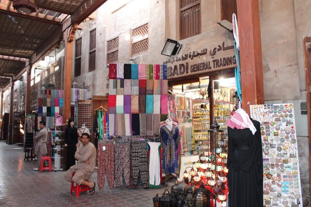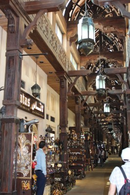 Dupa ce ne racorim cu un minunat suc de fructe naturale, proaspat stoarse, plecam mai departe spre souq-urile (bazaruri) aflate in acesta parte a orasului. Intram prin souq-ul Bur Dubai, acoperit de o pergola cu arcade, plin cu tarabe incarcate cu tot felul de marfuri, majoritatea made in China. Trecem apoi pe langa souq-ul de parfumuri pentru a ajunge la cel de aur.