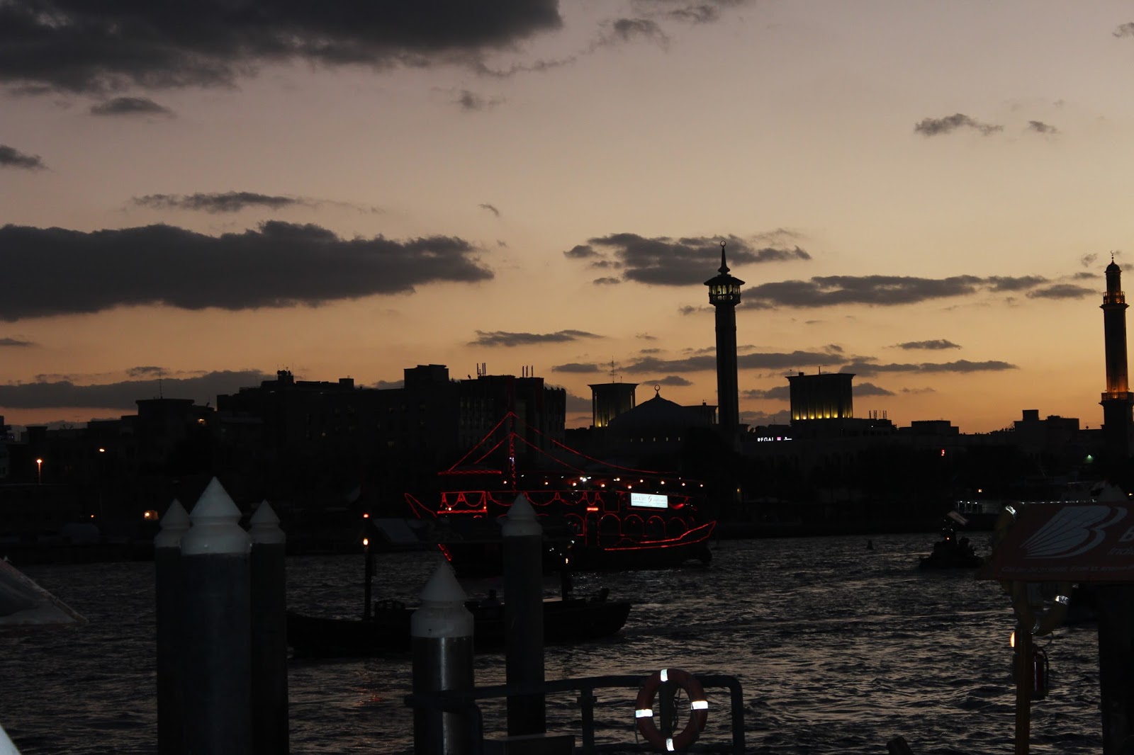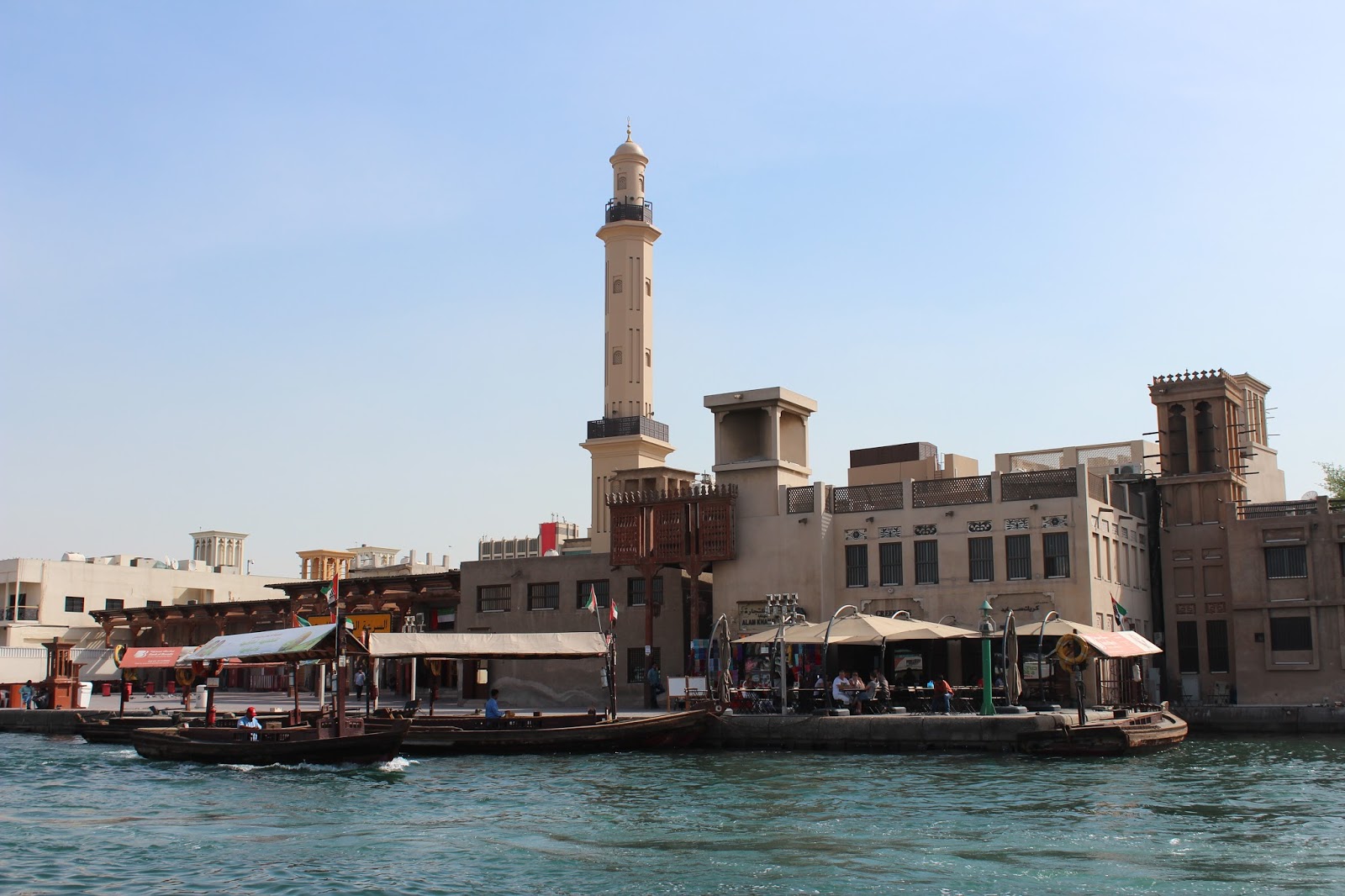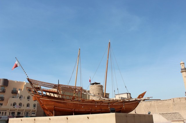 Pasii ne poarta catre Dubai Creek, admiram frumusetea canalului, numeroasele abra (barca-taxi) care traverseaza canalul plimband calatorii de pe un mal pe celalalt, barcile traditionale din lemn (dhow) cu care se face comert, coletele, pachetele si pachetelele descarcate pe tarm ducandu-te cu gandul la China. Si nu spun mai mult …..