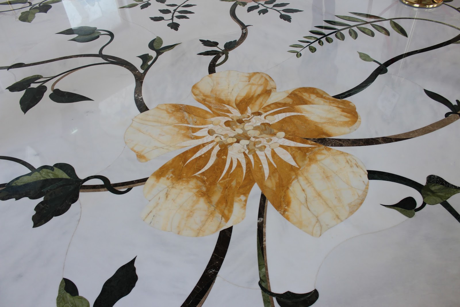 Marmura alba a fost aleasa de catre seic ca simbol al puritatii si pietatii. Mozaicul floral este ceva deosebit si bineninteles, cel mai mare din lume.