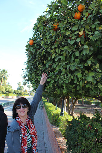 Chiar daca apa nu strabate canalele amenajate pentru asa ceva, ne bucuram de frumusetea si mirosul portocalelor. Nu ne putem bucura si de gustul lor pentru ca nu sunt comestibile ci doar ornamentale. Ghidul ne-a spus ca in Maroc exista aproximativ 60 de soiuri de portocali.