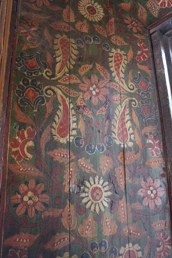 Inca de la intrare ne intampina poarta a carei culoare este albastru pe exterior si verde pe interior. Prin ea se zareste turnul moscheei.