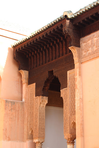 De la moschee o pornim pe jos pe stradutele inguste ale Marrakechului, printre tarabe cu smochine si curmale, vase pline cu condimente, covoare atarnate pe zidurile cladirilor si zecile de pisici care se plimba agale (ne amintesc de cainii de acasa), catre Balatul Bahia.