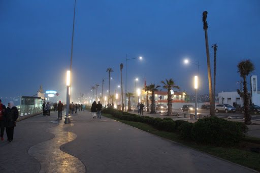 Cum este deja seara, trecem prin cartierul rezidential Anfa ca apoi sa facem o mica plimbare pe jos pe promenada Ain Diab (cornisa). Umezeala este foarte mare si desi nu bate vantul, Oceanul Atlantic este destul de agitat.