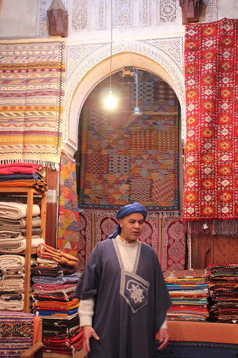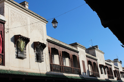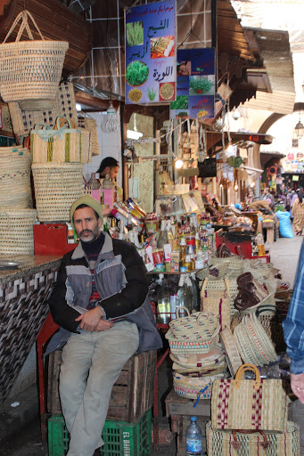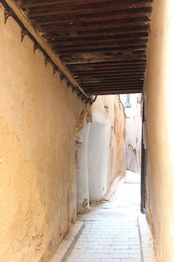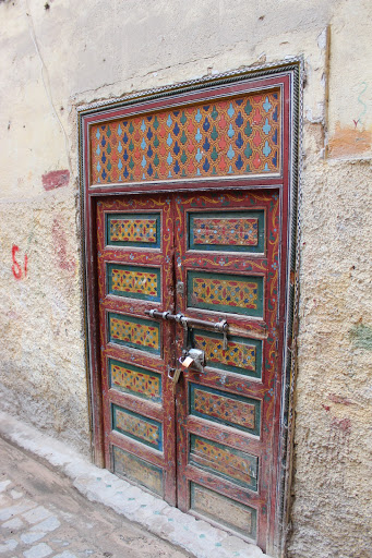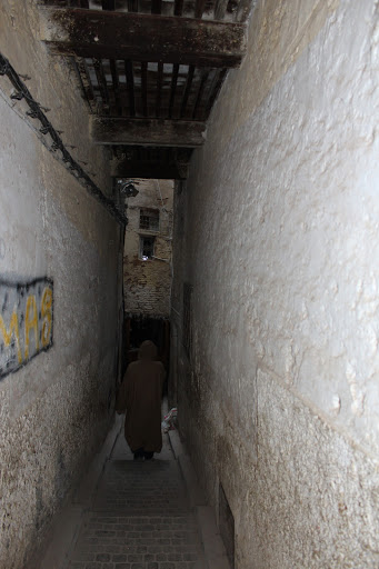 Ne despartim de palat si o luam incet pe strazile inguste catre intrarea in medina. Trecem prin zona locuita candva de evrei (mari comercianti) ale caror locuinte se remarca prin balcoanele pe care nu le intalnesti la casele musulmanilor.