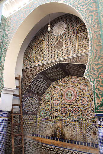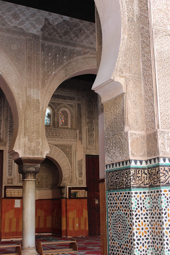 Facem un mic popas la Medersa Attarine. Ce este o medersa? Este o scoala unde copiii vin sa desluseasca tainele Coranului. De la cea mai frageda varsta pana la 50 de ani sunt primiti aici sa studieze din scoarta in scoarta cartea sacra a musulmanilor.