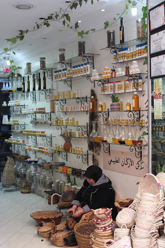 … ne oprim la o farmacie berbera. Argan, curcuma, turmeric, aloe vera, si alte produse naturale stau la baza zecilor de produse care ne-au fost prezentate impreuna cu efectele lor benefice. Si, cum spunea farmacistul: nu sunt ieftine, sunt medicamente.