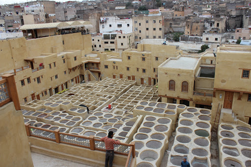 Dar sa nu uitam renumitele locuri de realizare si vopsire a pieilor. Eu una nu am ajuns la cele functionale din cauza mirosului. Intregul meu organism s-a revoltat la mirosul pe care il simti trecand pe strazile limitrofe zonei si a spus: NU. Eu aici nu intru. Asa ca am vizitat numai un magazin de pielarie din care puteam admira privelistea vopsitoriilor aflate in reabilitare. Sa nu va inchipuiti ca aici nu mirosea… Mirosea, dar la un nivel acceptabil. Nu am sa povestesc nimic despre procesul de tratare a pieilor caci numai gandul la el si mi se intoarce stomacul pe dos. Un lucru este cer: gecile de piele rezultate in urma procesului erau „manusa”.