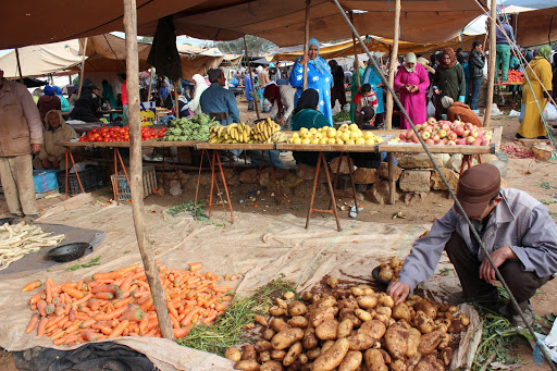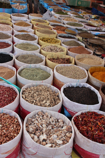 Intrucat zilele trecute am facut o vizita in Carrefour si am fost impresionati negativ de preturile de aici, l-am intrebat pe ghid de unde cumpara marocanii, oamenii simpli, normali, care nu au venituri foarte mari. Raspunsul: din souk-uri. Asa ca ne-am dus sa vizitam un souk. Unul dintr-o localitate mica si nu unul pentru turisti. Seamana un pic cu Oborul de dupa revolutie sau cu depozitele de la Europa din aceeasi perioada?