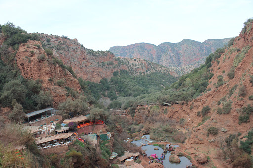 In mod normal programul nostru pentru cea de-a sasea zi cuprindea drumul pana la Marrakech si o dupa amiaza linistita, sau nu, in piata centrala din Marrakech. Dar ghidul a venit cu o propunere: Cascada Ouzoud. Am stat, ne-am gandit, am cautat pe net si raspunsul a fost: da, mergem. Si nu ne-a parut rau. In primul rand drumul pana acolo, venind dinspre Beni-Mellal este extraordinar de frumos. Maretia Muntilor Atlas, sau mica parte pe care am vezut-o, culorile care trec de la verde la bej pentru ca intr-un final sa devina rosu arzator te tin permanent cu ochii lipiti de geam. Asta in situatia in care nu l-ai rugat pe sofer sa opreasca, pentru a nu stiu cata oara, sa faci si tu o poza.