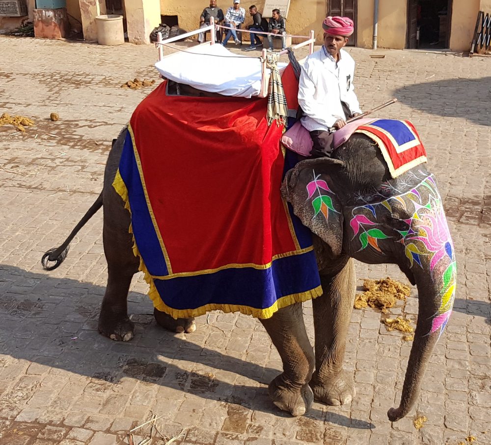 Poti ajunge sus in fort fie mergand pe jos, fie cu elefantul. Si bineinteles ca nu am ratat o plimbare cu elefantul. In asteptarea acestuia am vazut si auzit ce inseamna sa vrei sa vinzi in India. Este incredibil cata perseverenta pot avea oamenii acestia cand incearca sa-ti vanda ceva.