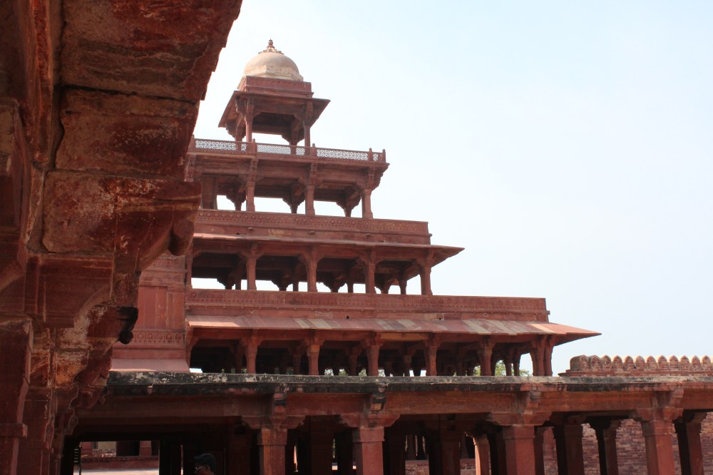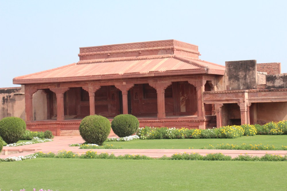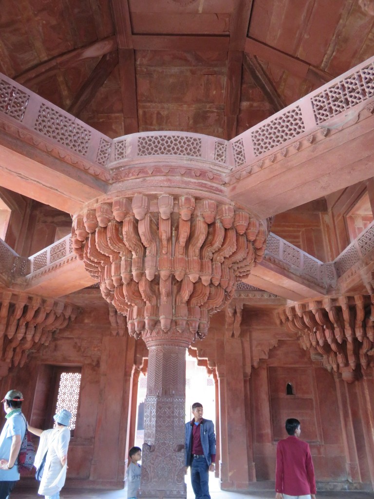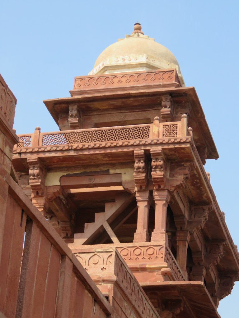 Din parcarea rezervata autobuzelor, microbuzelor si masinilor esti dus, dupa ce ti-ai cumparat bilet de vizitare, cu un jaf de microbuz pana la complex (din motive de protejare a mediului :)). Claie peste gramada, zdruncinati, prafuiti si toate astea pe o caldura infernala. Ceea ce se poate vedea in acest complex spune multe despre arhitectura Imperiului Mughal. In curtea mare a moscheii Jama Masjid, se intra prin Marea poarta Boland Darwaja, iar intr-un colt se afla mormantul de marmura alba al lui Salim Chisti, cunoscut pentru indeplinirea dorintelor. Se spune ca datorita lui, Akbar a avut fiul pe care si la dorit atat de mult, motiv pentru care l-a si numit dupa numele acestui sfant sufit. In complexul palatului se afla sala audientei publice (Diwan-i Am), sala audientei private (Diwan-i Khass), Panch Mahal cu mai multe etaje si alte cateva cladiri administrative si rezidentiale construite folosind gresie rosie locala, incorporand atat caracteristici stilistice hinduse, cat si musulmane si chiar crestine.