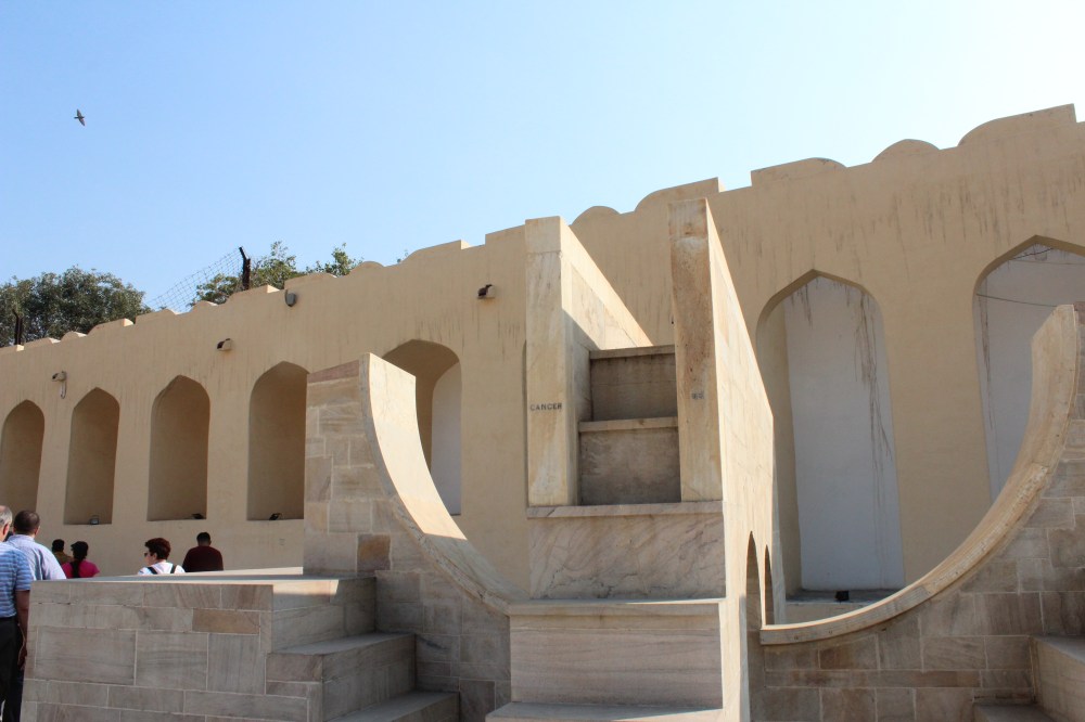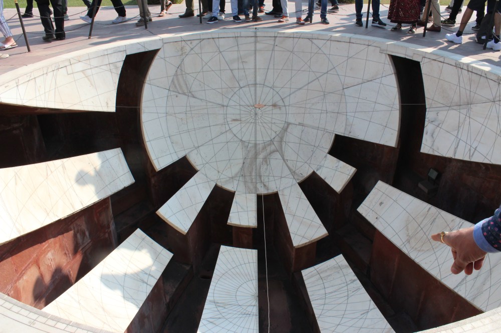 Urmatoarele obiective in excursia noastra au fost Jantar Mantar (Observatorul Solar) si City Palace, nu inainte de a vedea o fabrica de tesaturi cu imprimeuri realizate manual cu vopsele naturale si un magazin de covoare de asemenea realizate manual. Dar sa incepem cu observatorul. Eu una pot spune ca pe mine m-a lasat cu gura cascata. Nu-mi inchipuiam sa gasesc asa ceva in India. La unele modele mi-a fost greu sa inteleg astazi cum functioneaza, ce sa mai spun la momentul la care au fost create. Daca mai precizam si faptul ca 80% sunt functionale si astazi, cu o precizie de invidiat, concluzia este: doar avem impresia ca rasa umana a evoluat in timp.